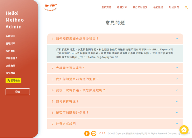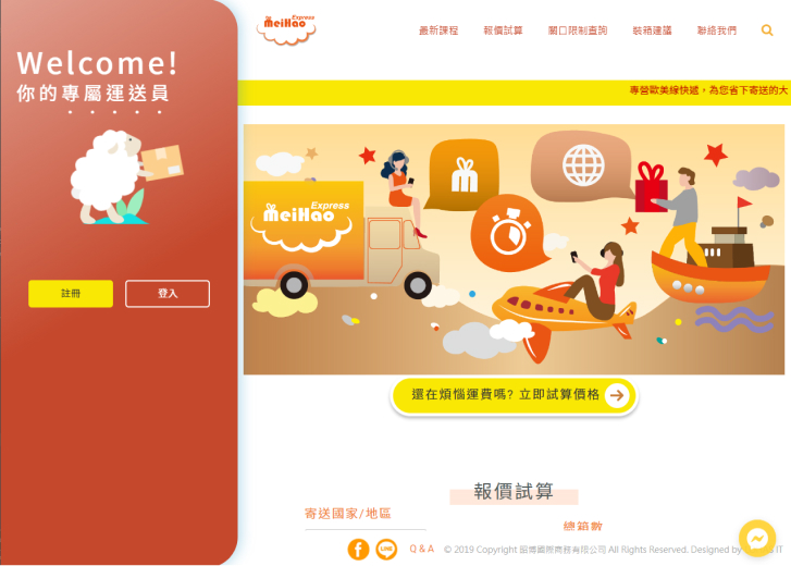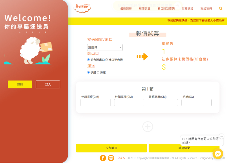 可在網站填入包裹材積進行試算報價與追蹤包裹狀態