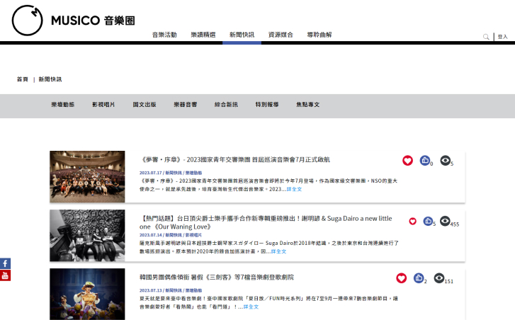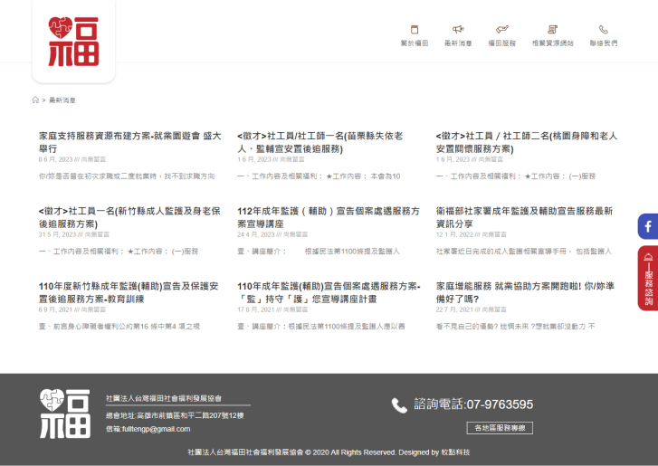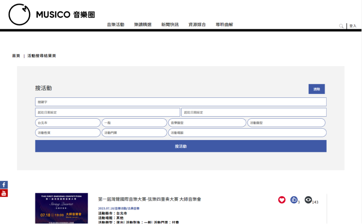 客製化活動搜尋表單、、文章可統計觀看數、可進行按讚分享、不同文章類型顯示不同樣式