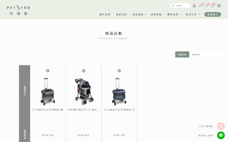 客製化產品比價、依照需求進行產品推薦功能、產品保固登入與查詢、