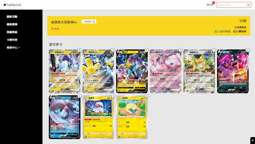 使用者可在網站查詢卡牌價格、進行組牌與購買卡牌,並將自己的牌組匯出成線下比賽專用格式。